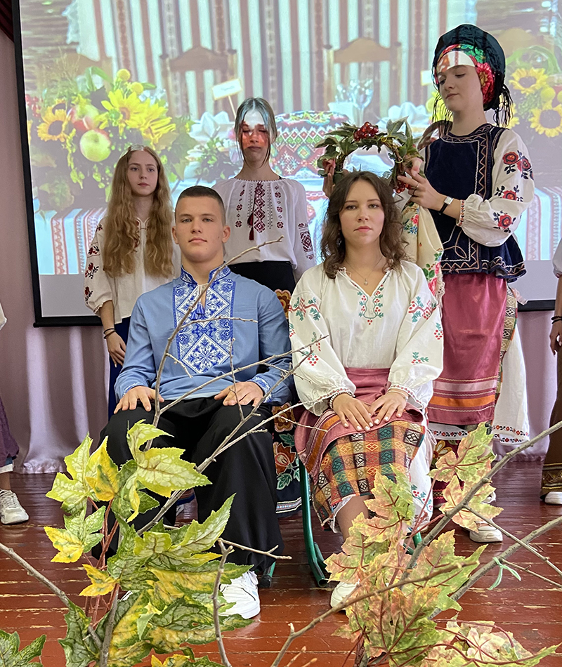 3 жовтня у ліцеї відбулася концертна програма «Нація незламних», присвячена тим, хто боронить рідну землю від ворога і тим, хто впевнено тримає освітянський фронт. З теплими словами вітання до всіх присутніх звернулась директор ліцею Зданевич О.Г. та з нагоди Дня працівників освіти вручила грамоти вчителям від начальниці управління освіти Дарницької РДА Списовської Є.І. Українці вже довели всьому світові, що сильний і незламний народ. І навіть у часи найтяжчих випробувань завжди знаходили силу в гуморі. Сьогодні гумор це не лише засіб для подолання стресу, це потужна зброя для інформаційної війни та національної консолідації. Саме тому учнівське самоврядування ліцею підготувало для усіх присутніх інсценізацію твору І. С. Нечуя-Левицького «Кайдашева сім'я». |