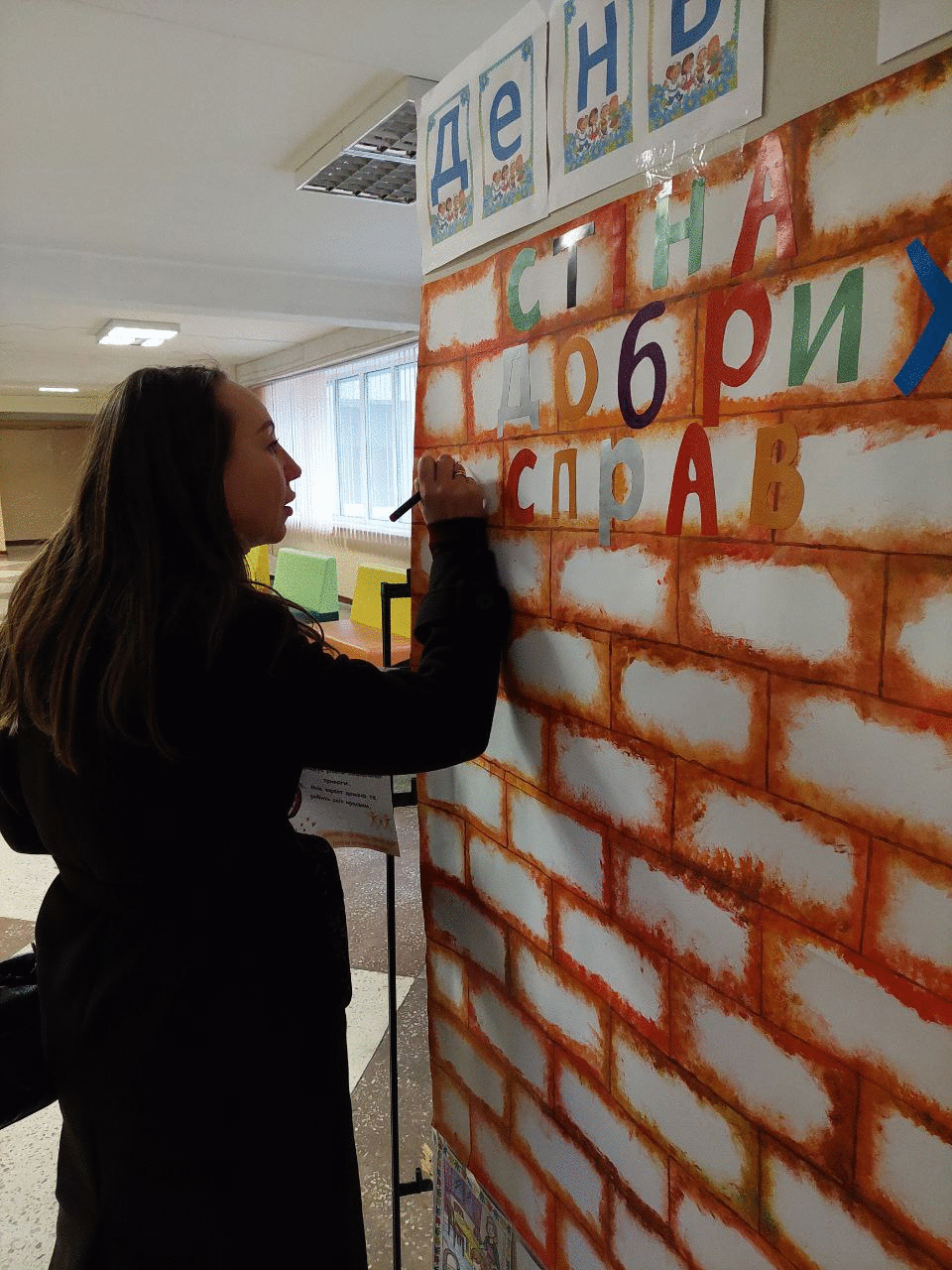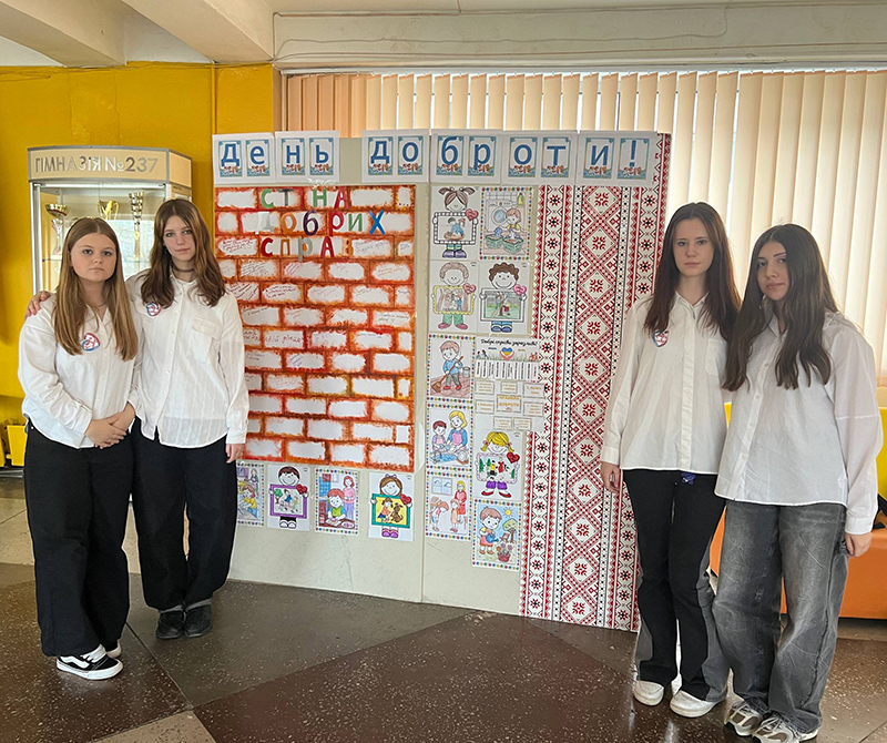 Щороку 13 листопада світ відзначає Всесвітній день доброти — день, коли ми особливо звертаємо увагу на силу людської доброти та взаємної підтримки. Доброта має здатність об’єднувати людей. Вона сприяє створенню дружнього середовища, зміцнює взаємодовіру і підтримує емоційне здоров’я кожного з нас. «Зробімо наш світ кращим разом, починаючи з простих добрих вчинків» - під таким гаслом учні 9-Б класу створили Стіну Добрих Справ, де кожен з учасників освітнього процесу зміг поділитися своїми добрими справами та побажати усім добра. |